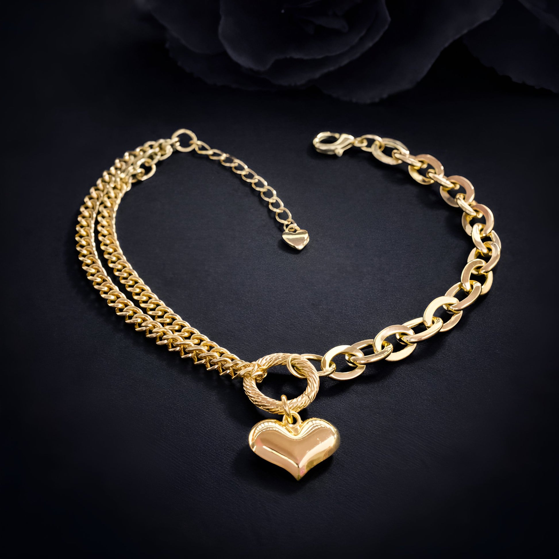 Girl, let me tell you something! this isn’t just a bracelet, it’s a whole mood. The Amore Bracelet is that one piece that makes you feel instantly put together, like you didn’t even have to try. The double chain gives you that bold, luxe energy, and the heart charm? That’s your little reminder that love ..... your love, is the most powerful thing you carry.