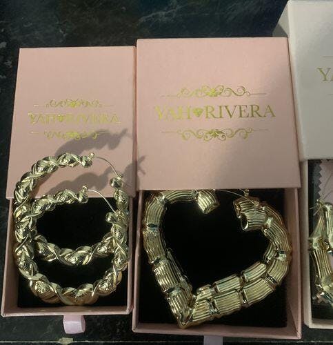 - Gold filled heart-shaped bamboo hoops