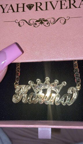 14K GP DOUBLE PLATED SCRIPT NAME CROWN NECKLACE