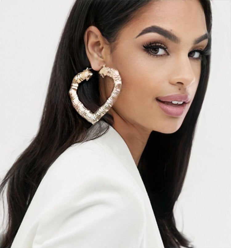 These 90s-inspired earrings are a perfect way to add a touch of nostalgia to your look. The gold filled heart-shaped bamboo hoops are lightweight and comfortable to wear, and they're sure to turn heads. Whether you're dressing up for a night out or just running errands, these earrings will add a touch of style to any outfit.